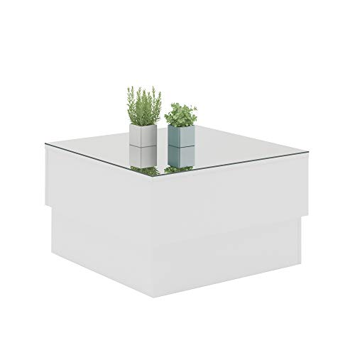 Momme Home Table Basse Verre Miroir Blanche 60x60x35 cm
