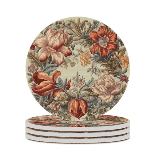 Lot de céramique 6 dessous pour table basse en bois - Fleurs