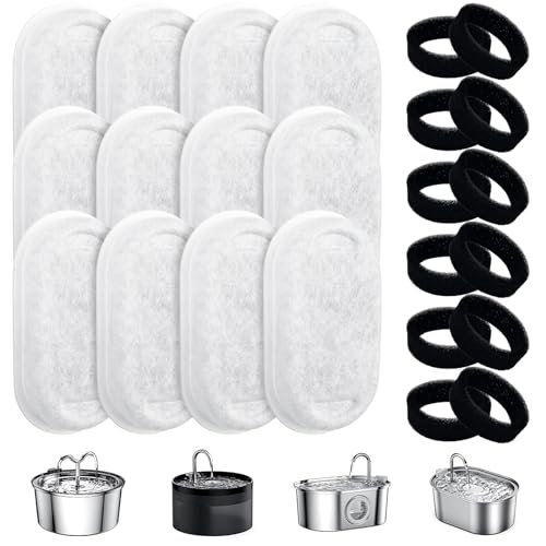 Filtre Fontaine Eau Chat Dmora, 12 Filtres + 12 Éponges, Car...