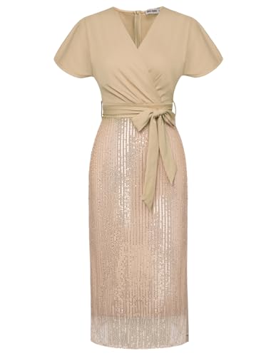 Robe élégante moulante pour femme, crayon col en V avec cein...