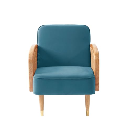 Fauteuil Lea en Velours Bleu avec piètement en Bois