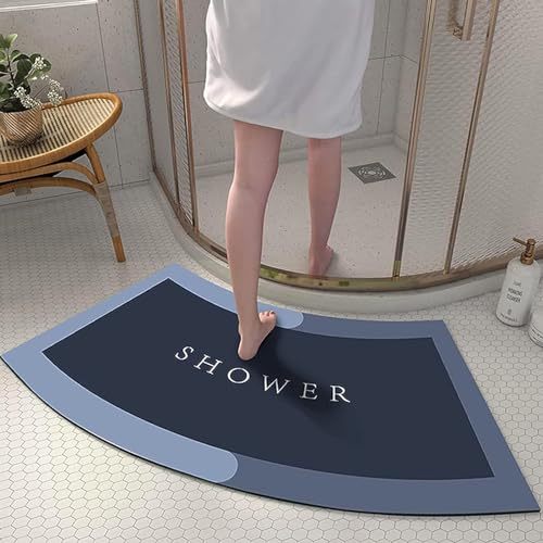 Diatomite Tapis de Douche Arrondi Bleu, Super Absorbant