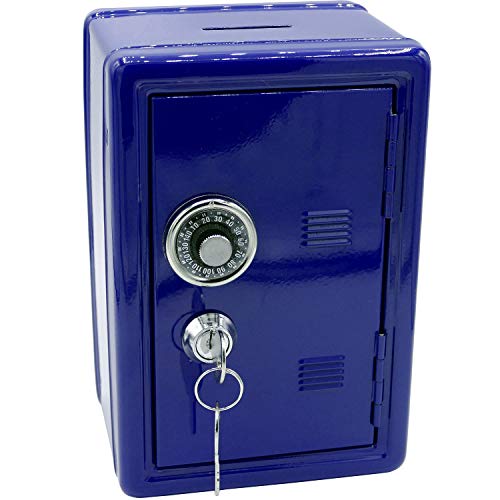 Tirelire en métal en Forme de Coffre Fort avec Clef – Bleu