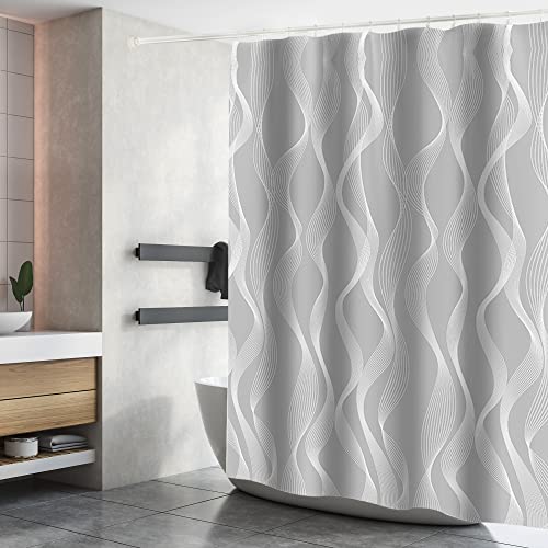 Furlic Rideau Douche Tissu Anti Moisissure Gaufre Gris 180x2...