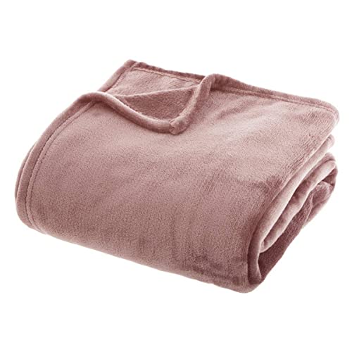 Atmosphera - Plaid uni en Flanelle - Rose 180x230 cm