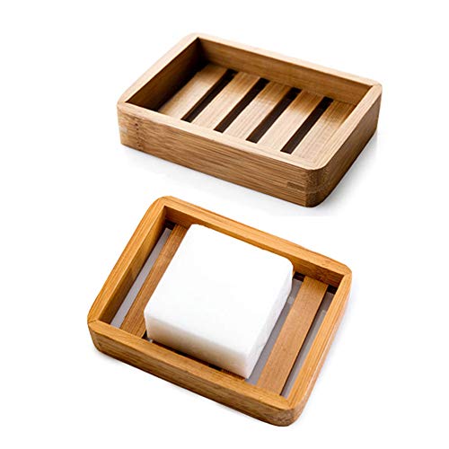 Kaxich Lot de 2 Porte-Savon en Bois Bambou Naturel Boîte à S...