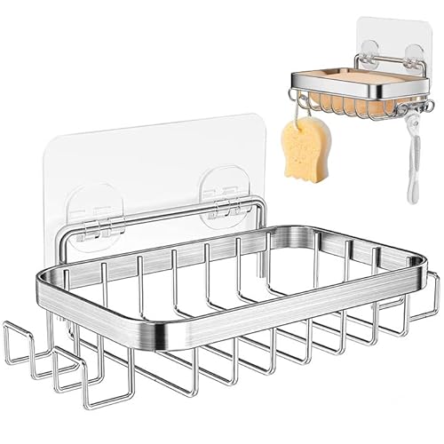 Adhesif Porte Savon INOX avec 4 Crochets,Carré Porte-Savon D...