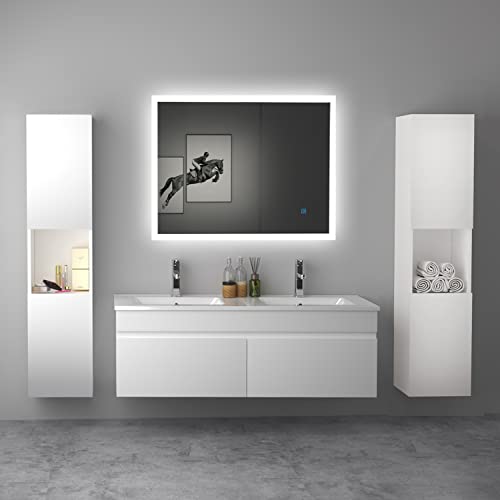 Ensemble Meuble Bain Blanc 120cm Vasque Plus Miroir Colonne