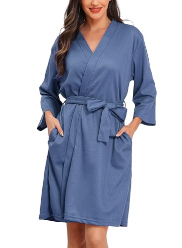 Lovasy Peignoir Court Femme en Tricot Gaufré Robes de Chambr...