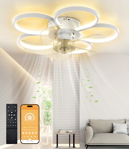 Ventilateur plafond LED 53cm, 3 températures, réglable, 6 vi...