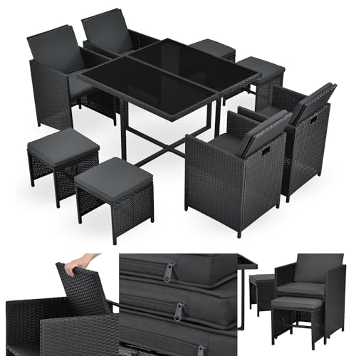 Juskys Polyrotin Baracoa Salon de Jardin 9 Pièces Résistant...