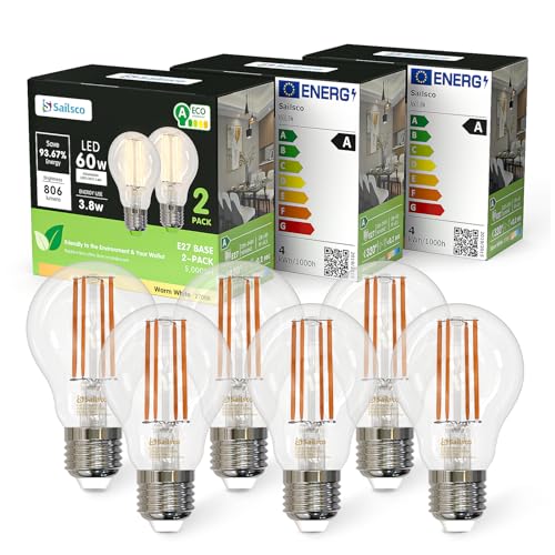 Sailsco Classe A Ampoule LED Filament Standard E27 A60,3.8W...