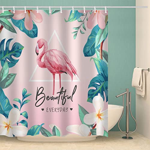 AASIRA Rideaux Anti Moisissure Flamant Court, 12 Crochets, F...