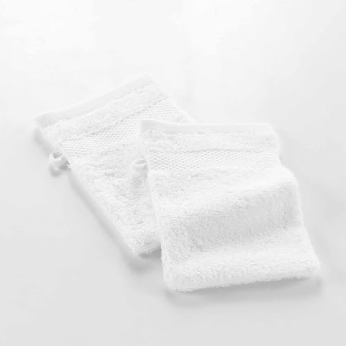 ?️ INCLUS - 2 Gants de Toilette (15 x 21 cm) Elegance Blanc,...