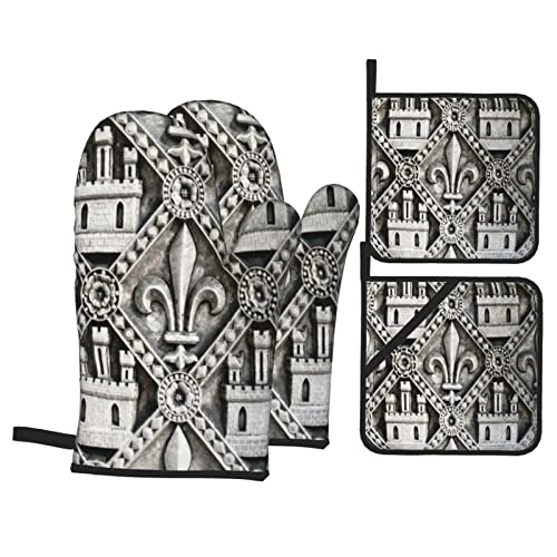 Gant et Maniques 4 pièces, Gant à four, Ensemble de cuisine...
