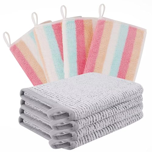 GRBAIN 8 Pièces Gants de Toilette Microfibre Coton Gant Toil...