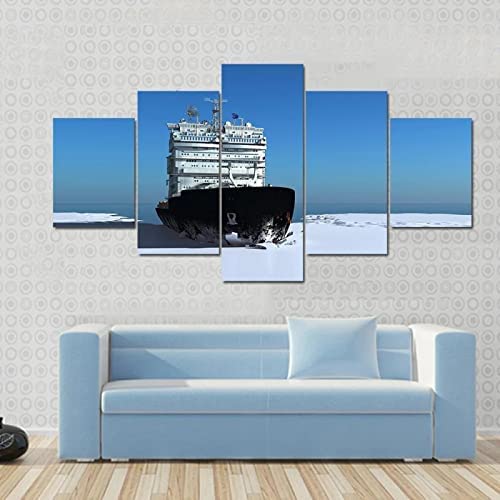 Tableau 5 Pièces Brise-Glace Sur Glace 5 Panneaux Tableau Su...