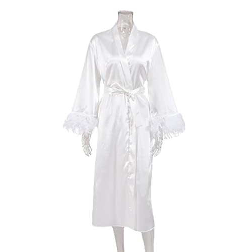 BYIYGSL Robe Longue Cravate Blanche Femme, Pyjama Plume Glac...