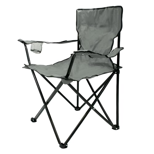 Chaise camping pliable porte-gobelet grise