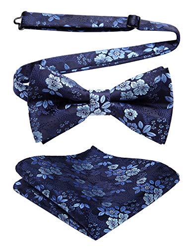 Papillon Nœuds Bleu & Blanc Homme Mouchoir Réglable