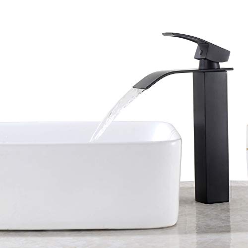 Auralum Lavabo Cascade Noir, Grand Bec Carré en Laiton