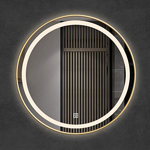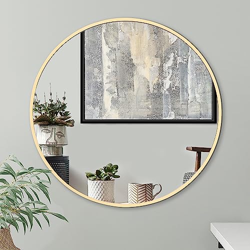 SanBouSi Grand Miroir Mural Rond 80cm Cadre Métal Doré Alumi...