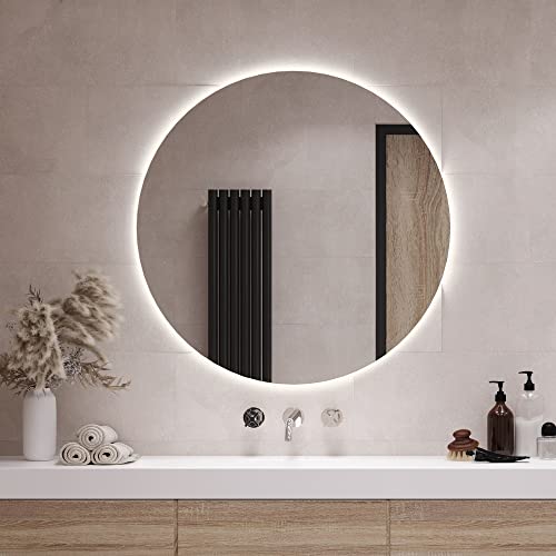 Miroir de bain, Miroir rond rétroéclaié LED, Grand maquillag...