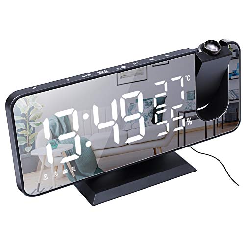Réveil à Projection Grand écran Miroir LED 7,4 Noir-Blanc
