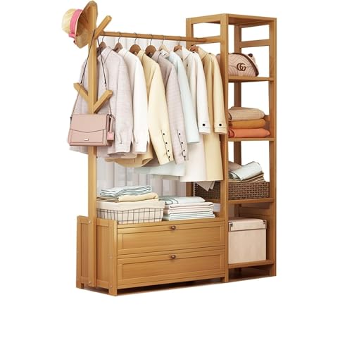 ZYDZ Portant à vêtements portable en bois autonome, tiroirs...