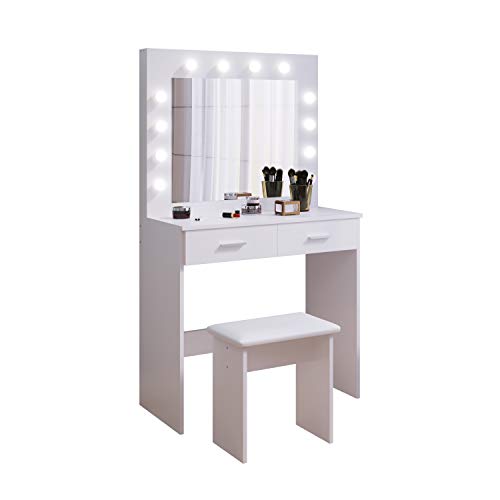 Jooli Coiffeuse Hollywood Style avec Miroir et Tabouret LED