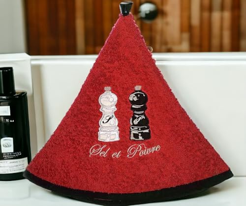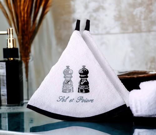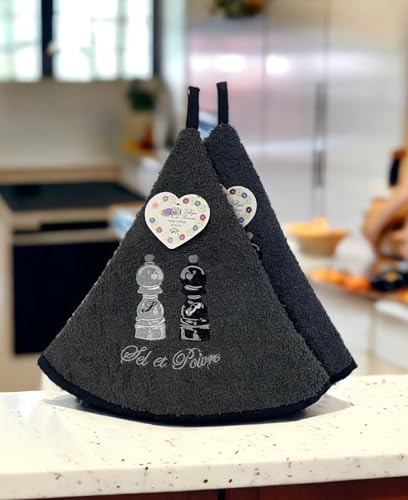 Torchon Provence Coton Lavable Sel et Poivre Rond Attache