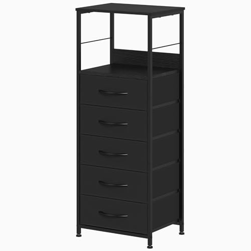 CADUKE Commode, 5 tiroirs tissus, cadre acier, bois, couloir...
