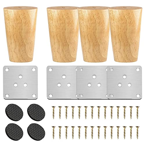 TAROME 4Pcs Pieds de Meubles Rond en Bois Naturel 8cm Pieds...