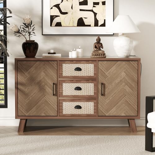 Buffet, Buffet Avec Motif à Chevrons, Trois Tiroirs Et Deux...