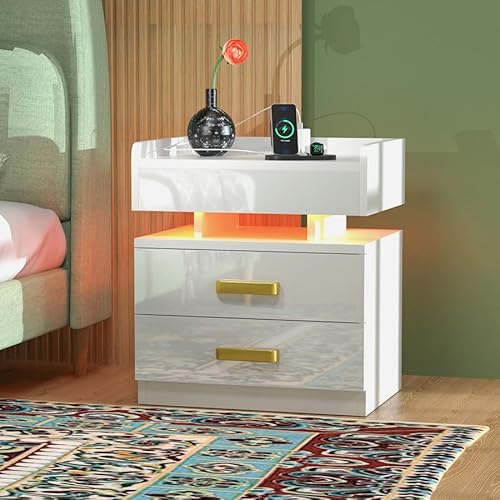 Lvhecforhm Table de Chevet avec Multiprise, 2 Prises CA, 2 P...