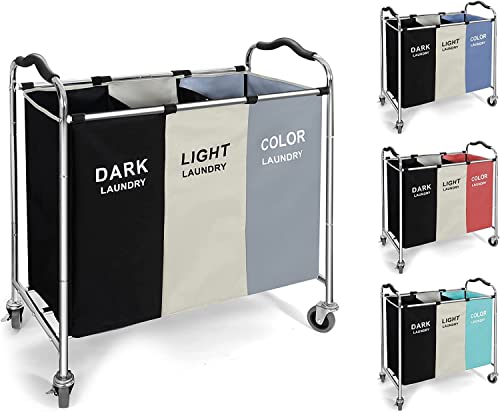 Trieur à linge 3 sections, panier 240L, grand panier pour vê...