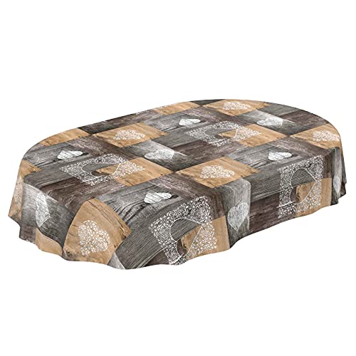 ANRO Cœur Bois Ciré Nappe Lavable Grande Table