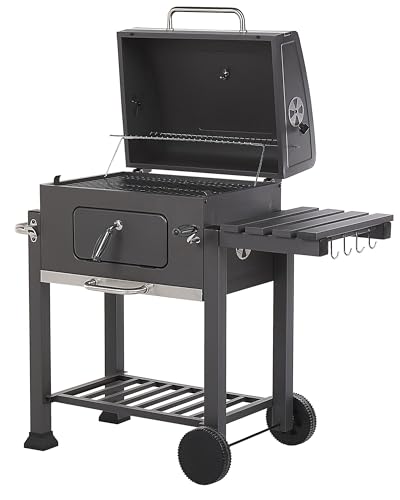 Gril Charbon Bois Acier Gris Roulettes Mobile