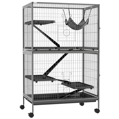 Pawhut Cage pour rongeurs Multifonction 4 Plateformes 3 ramp...