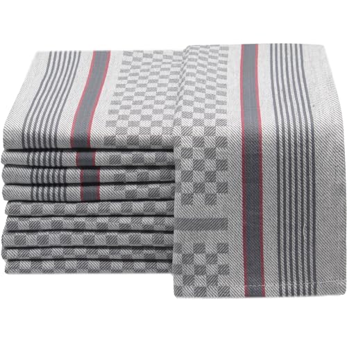 Zollner Set de 10 torchons de cuisine en coton gris blanc à...