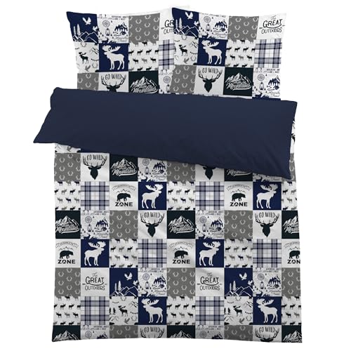 Housse de couette 200x200 2 personnes Renne Carreaux Gris Bl...