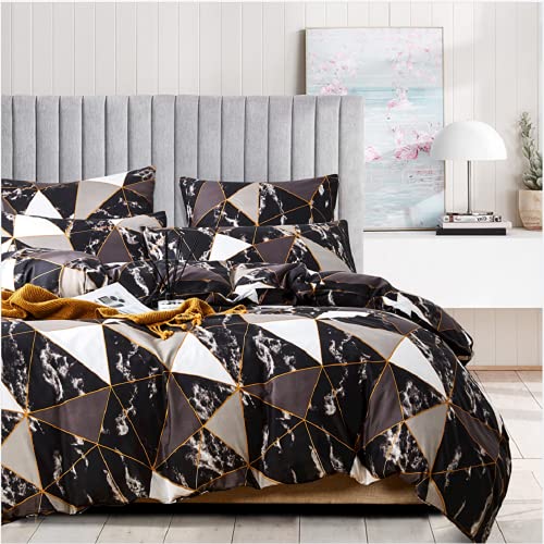 Parure de lit 200x200 Noir Gris Blanc Carreaux Motif 2 Perso...