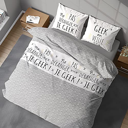 Parure geek grise idéale pour un lit 2 personnes standard :...