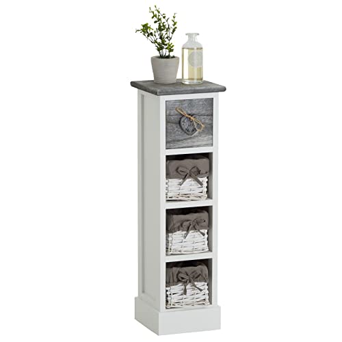 IDexe Chiffonnier Flower Petit Meuble Bois Paulownia Blanc/G...