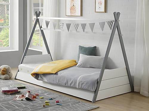 Lit tipi SIOUX - avec sommier et matelas inclus - Taille : 9...