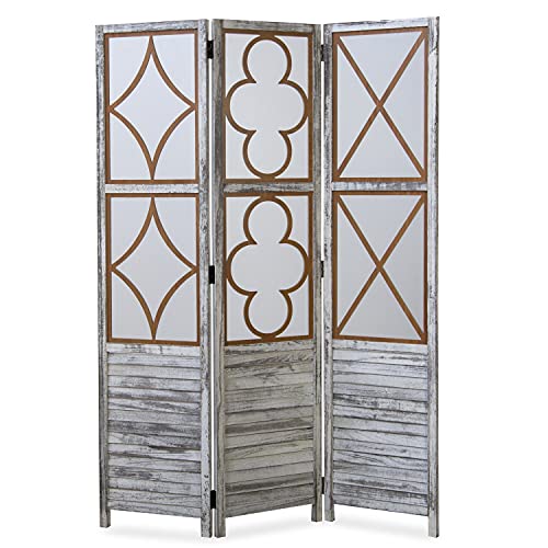 Homestyle4u 1859 Paravent 3 pièces en bois design vintage Bl...