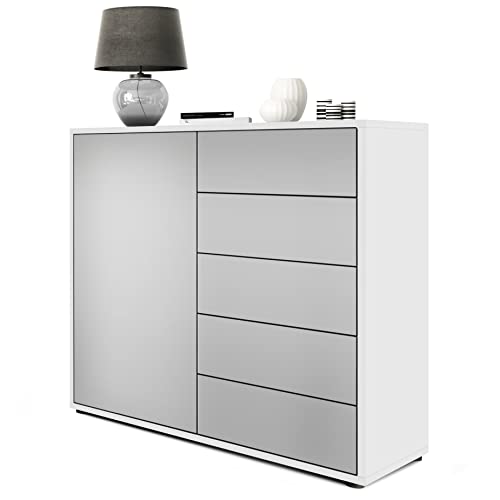 Vladon Buffet Ben V2, Commode avec 1 Portes et 5 tiroirs, Bl...