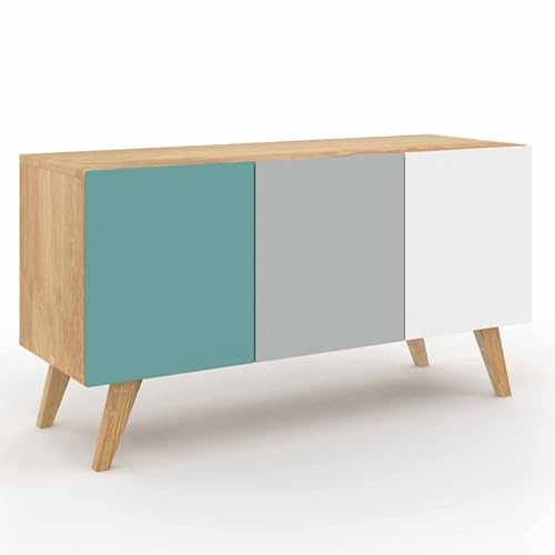 IDMarket - Buffet Bas Scandinave 113cm Alice 3 Portes Bleu-G...