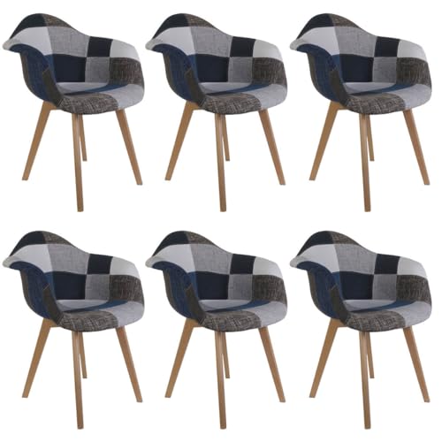 AltoBuy Damas - Lot de 6 Fauteuils Patchwork Bleu et Gris
