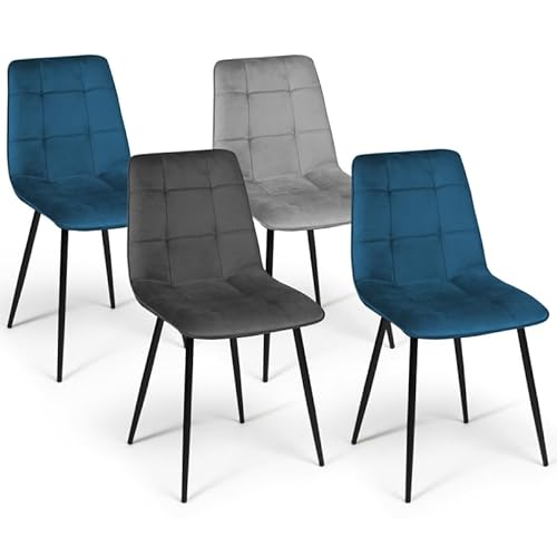 IDMarket - Lot 4 chaises Mila Velours Color Bleu Gris Clair...